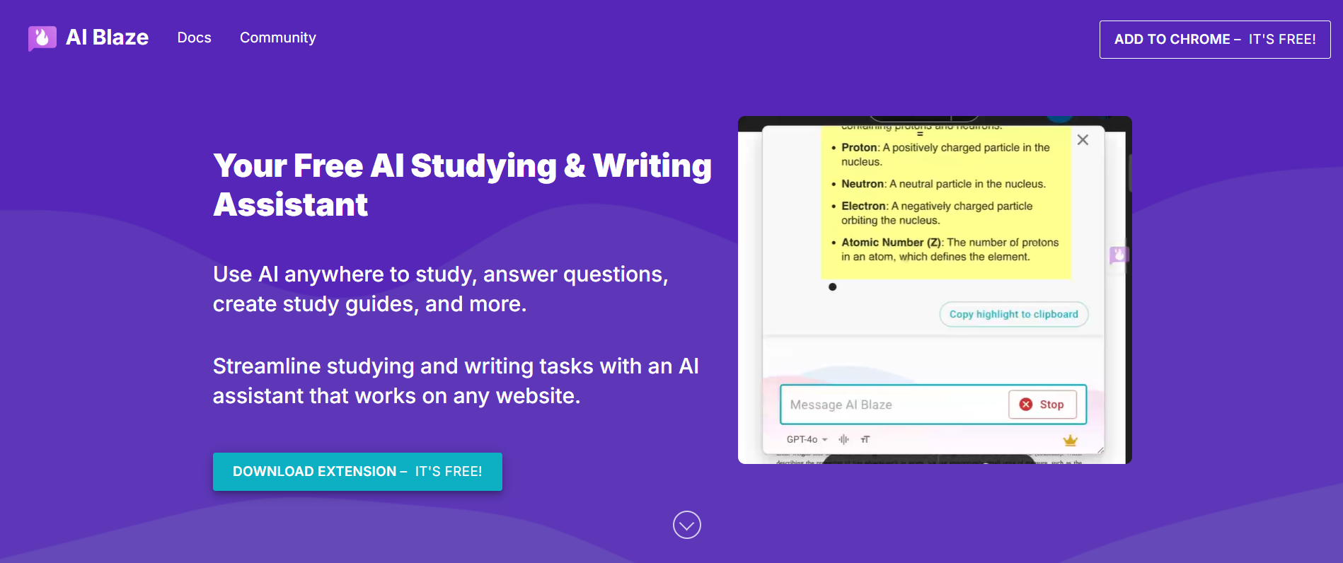 AI Blaze appeals to students who want AI-powered help without committing to a subscription. Instead of relying on uploads, it works directly in the browser, allowing users to highlight text or questions and receive instant explanations.