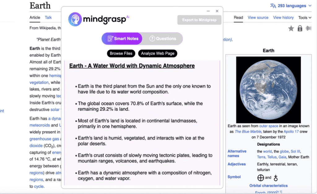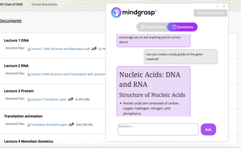 - Mindgrasp’s AI analyzes the notes and provides content to give detailed answers.