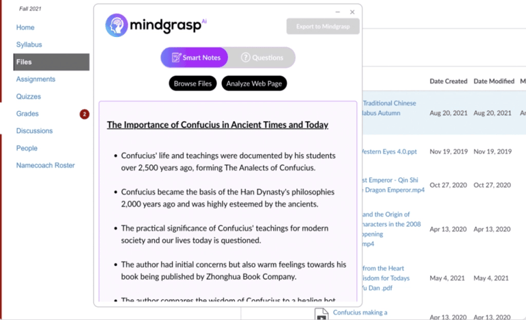 Mindgrasp’s integration of this Canvas Chrome extension feature reflects our commitment to providing advanced AI solutions for education. This tool not only streamlines the learning process but also ensures that students have the resources they need to succeed in their academic pursuits.