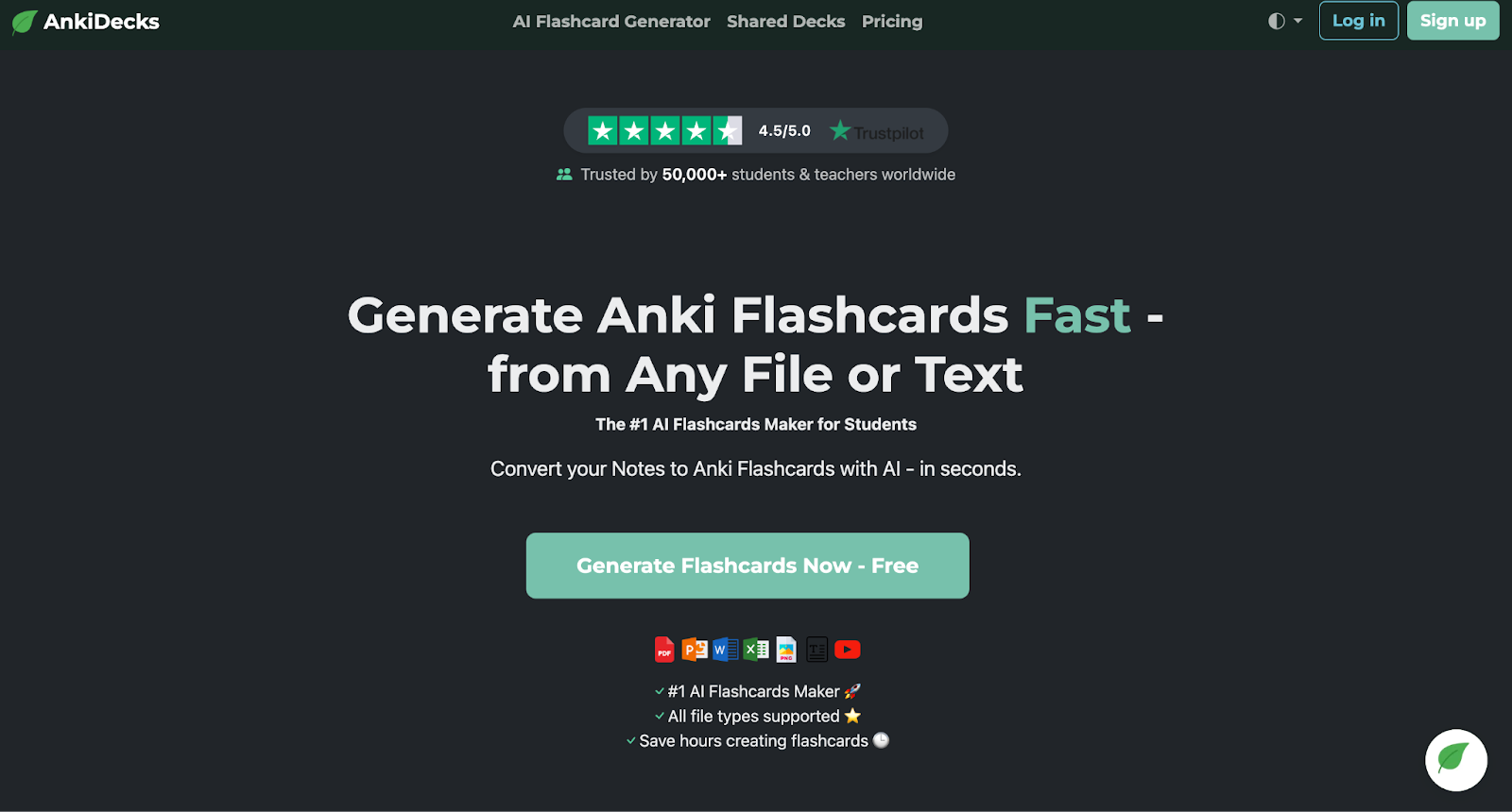 Students who want a tool that boosts memory and recall — especially for exam prep, vocabulary, formulas, dates, and other fact-heavy topics — while still letting you automate the flashcard creation process instead of building decks by hand.