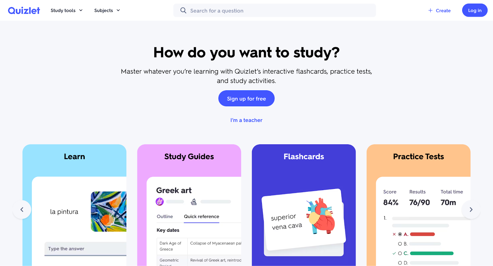 Quizlet is a study platform built around flashcards and self-testing, letting you create your own study sets or choose from tons of community-made sets. It focuses on repetition and quick practice, so you can lock in facts and concepts before exams. It doesn’t dig deep into explaining complex ideas, but it’s solid for reinforcing what you’ve already learned.
