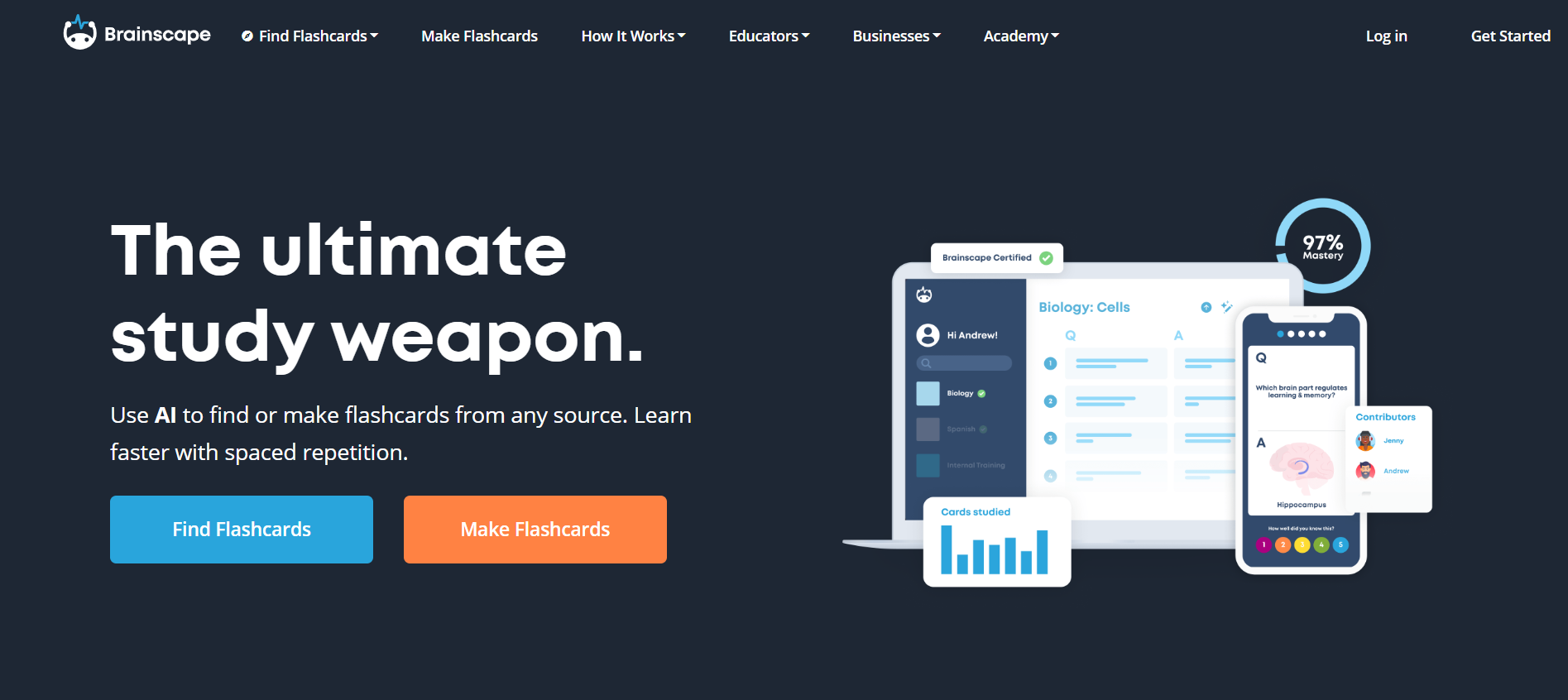 6. Brainscape — Best adaptive flashcard alternative to StudyFetch