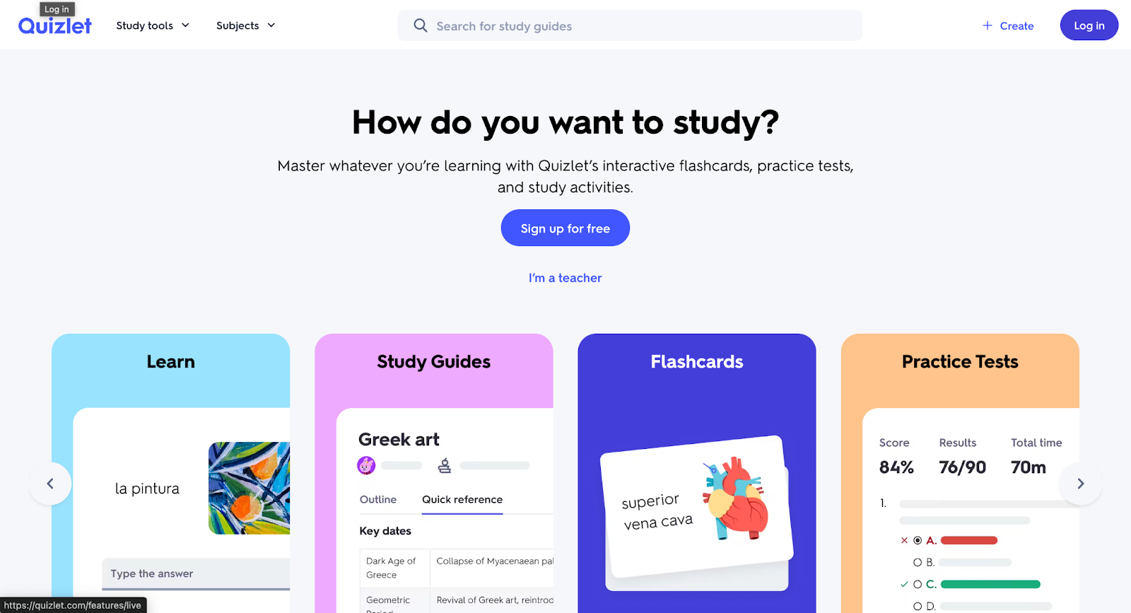 Instead of focusing on explanations or research depth, Quizlet is centered around repetition. Students often use it after they’ve gone through lectures, notes, or AI explanations elsewhere, using flashcards and practice modes to reinforce what they’ve already learned.